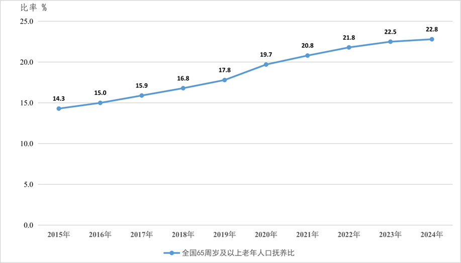 ▲图3 2015—2024年全国65周岁及以上老年人口抚养比