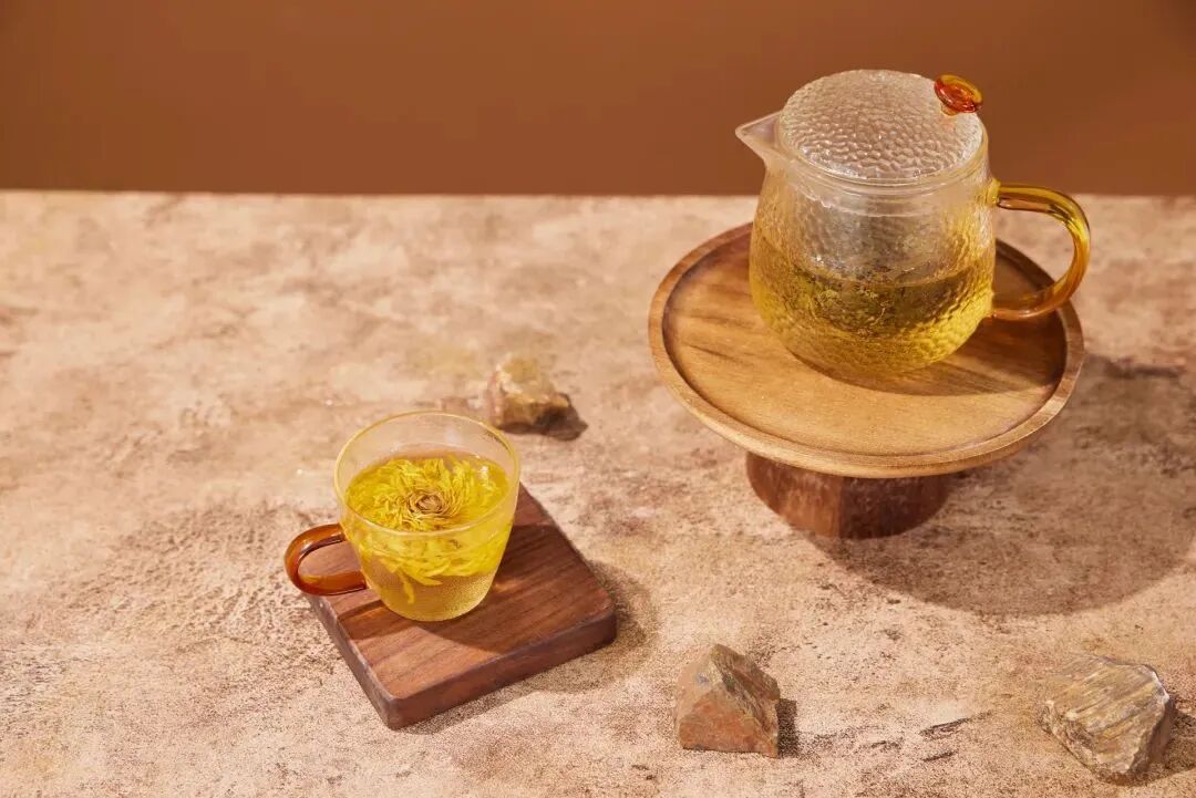 泡菊花茶一般使用玻璃杯具,多选用杭白菊3~5克,沸水冲泡10~15分钟即可饮用。这样冲泡茶水之时,不仅可以赏看朵朵菊花在水中舒展,茶汤由清变黄,又可嗅触菊花散发的缕缕清香,饮之更是甘洌可口、怡神醒脑。此外还可加枸杞子滋补肝肾、清肝明目,适用于电脑族日常护眼饮用;加金银花、茉莉花疏风散热,可用于防治风热感冒头痛、咽痒咽痛;加冬桑叶、蜜炙枇杷叶疏风润燥,适用于防治秋燥伤肺之咽痒干咳;加山楂化瘀消脂,适用于肥胖症、高脂血症。