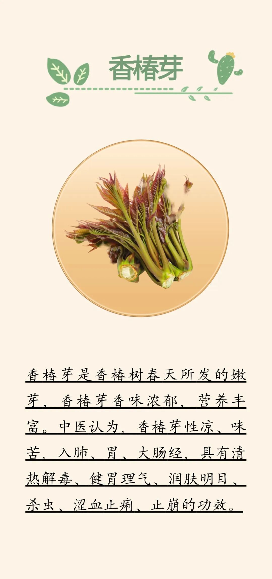 二来,阳气升发属于阳热的性质,而春又主肝,容易肝火旺,灼烧阴液。春天的各种芽菜、嫩苗正好鲜嫩多汁,可以滋养阴液,帮助人体应对春天的虚火。